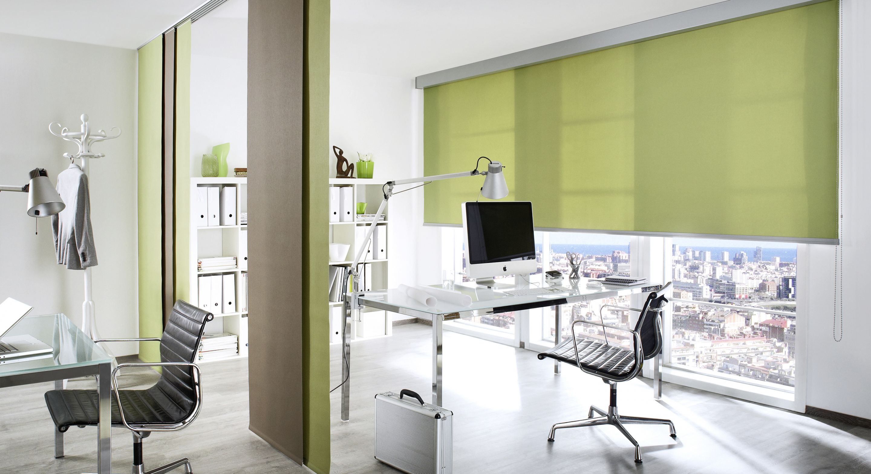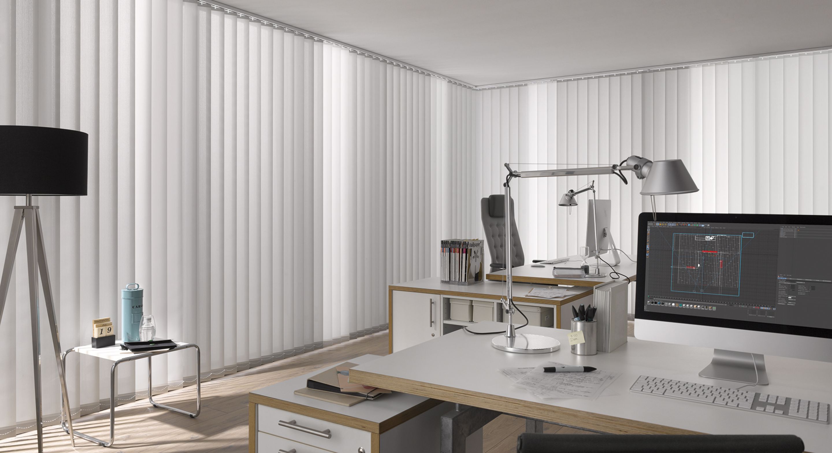 Wenn Sie sich wohlfühlen, fällt das Arbeiten leicht. Ein gut ausgeleuchteter Arbeitsplatz hält wach und Sie können sich länger konzentrieren. Den passenden Blendschutz haben wir in allen Farben und Formen. Akustik-Vertikallamellen dämpfen zusätzlich Lärm.