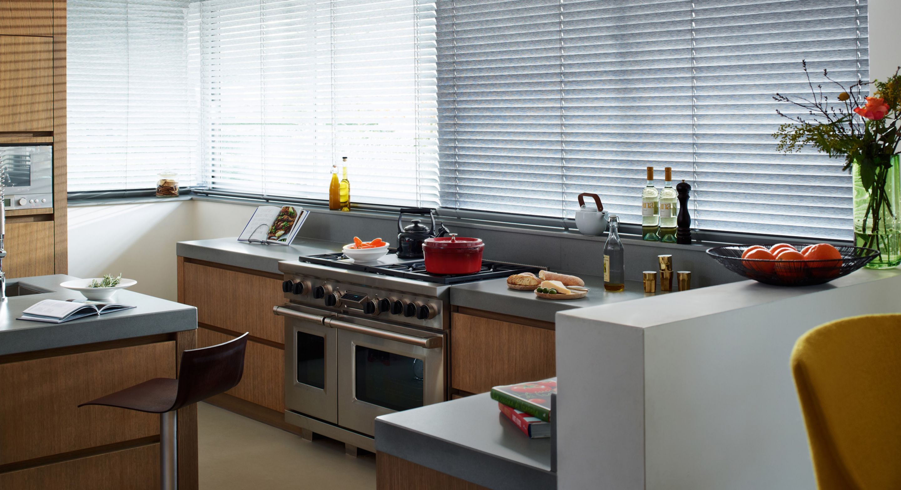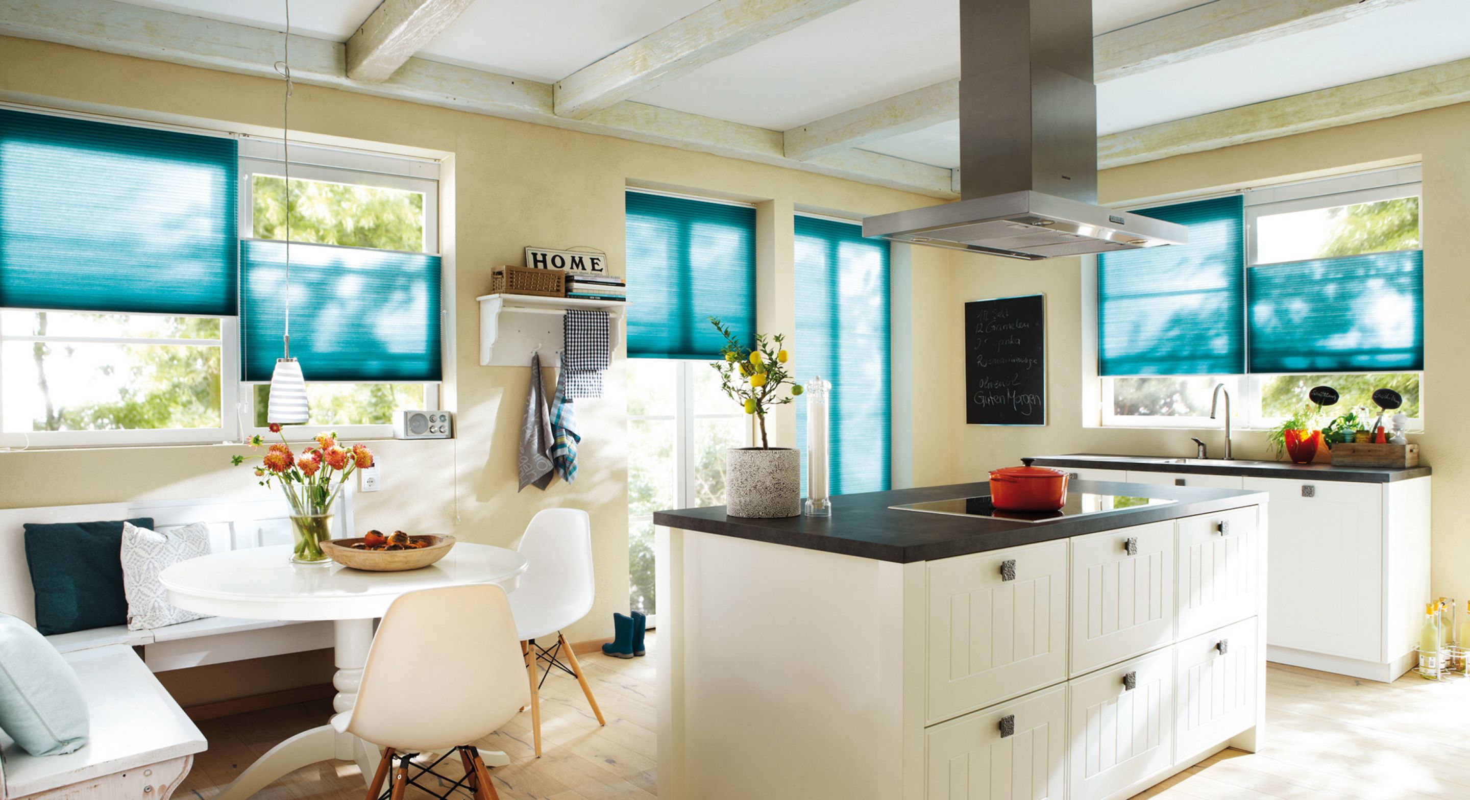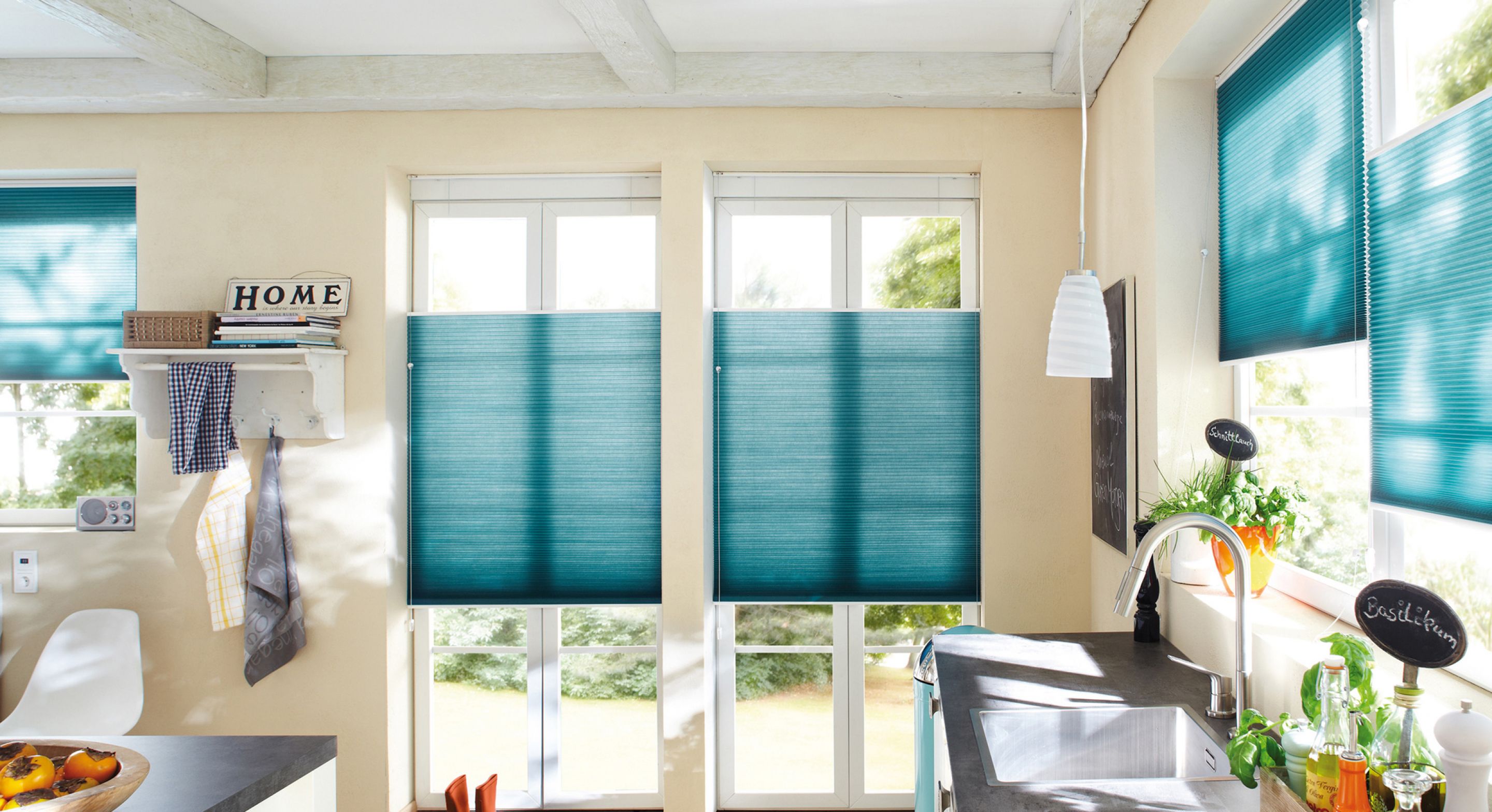 Zum scharfen Schneiden und Würzen brauchen Sie Licht, aber blenden sollte es nicht. Wählen Sie für Ihre Küche Plissees, Rollos oder Jalousien, die sich leicht reinigen lassen, Gerüche abweisen und trotzdem überaus wohnlich wirken.